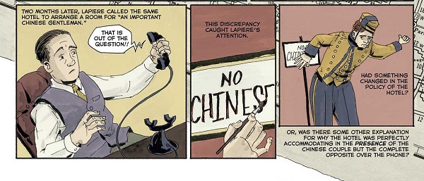 Спустя полгода после завершения путешествия Лапьер разослал в заведения, где они недавно останавливались, запрос о готовности их менеджеров принять китайцев. Из откликнувшихся на письмо 92% отелей и 91% ресторанов и кафе ответили отказом по расовым мотивам.