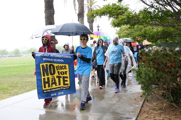 Учащиеся одной из американских школ с баннером АДЛ: «Нет места ненависти»
