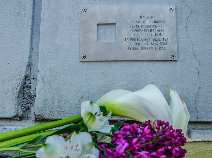 — Из первых трех табличек две установлены в память об интеллигентах —  инженере Константиновском и враче Ефимове — интеллигенция, как правило, становилась первой жертвой режима. Григорий (Герш) Константиновский, живший на нынешней улице Шота Руставели, — прадед писательницы, профессора нескольких итальянских университетов и переводчицы Умберто Эко — Елены Костюкович, которая и выступила заявительницей.