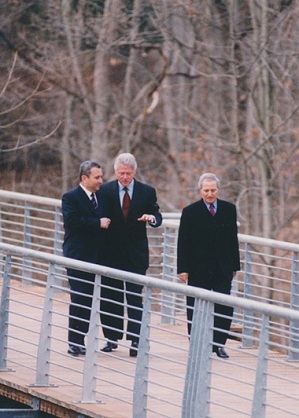 | На израильско-сирийских переговорах в Шепердстауне, 2000 г. Фото: historicshepherdstown.com | Президент США Клинтон с Эхудом Бараком и Ясером Арафатом на саммите в Кэмп-Дэвиде, 2000 г. Фото: knesset.gov.il |