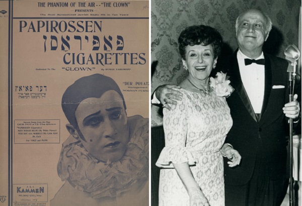 Между тем кое-что в этой истории не совсем ясно. В ней явно присутствует русский след, что следует из русского слово «купите» в тексте песни, за которым, правда, тут же идет аналог на идише — койфт. Да и папиросы существовали лишь на пространстве Российской Империи, на Западе курят сигареты. Но Яблоков, а именно он является автором оригинального текста, никогда не жил в Советском Союзе, а текст написан в начале 1930-х, когда Герман уже был вполне респектабельным американцем. Поищем разъяснений у самого автора. После войны он издал книгу «Клоун: вокруг света с театром на идише», где сообщает, что замысел этой песни возник у него еще в 1922 году, когда он жил и работал в Ковно (Каунасе) — тогдашней столице Литвы. Это многое объясняет, ведь Литва граничила с Советским Союзом, и в Ковно, разумеется, были в курсе происходящего у соседей. А русский язык уроженец Российской Империи Яблоник знал, как и то, что такое папиросы. Тогда, в Ковно, Хаим решил, что выводить песню в свет еще рано и вернулся к ней уже в США, где смог достойно раскрутить.