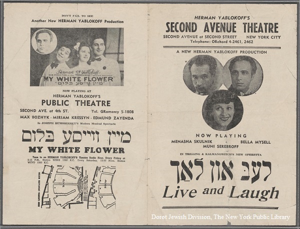 Сочетая таланты актера, режиссера, драматурга, поэта, композитора и продюсера Хаим становится одной из самых заметных персон Второй авеню, известной как «Идиш-Бродвей», где кучковались еврейские театры. Достаточно сказать, что более 35 лет он был бессменным президентом Еврейского актерского союзa. 1920 — 1930-е — эпоха расцвета театрального искусства на идише в Соединенных Штатах. Яблоков ведет еженедельную радиопередачу на идише, а его фирменное блюдо — музыкальные спектакли и пьесы, самым успешным из которых стал «Дер Паец» («Клоун»). Один из музыкальных спектаклей Германа носит название «Папиросн» — в нем впервые в 1932 году и прозвучала песня, о которой идет речь. Яблоков немедленно включил ее в свою радиопередачу, и она мгновенно стала популярной и за пределами театрального Нью-Йорка.