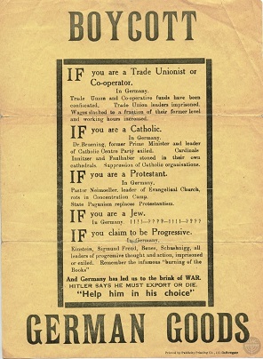 | Сертификат Хаавара | Листовка, призывающая к бойкоту немецких товаров |