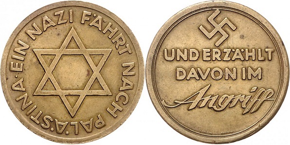 Медаль, выпущенная в честь цикла статей «Нацист едет в Палестину»