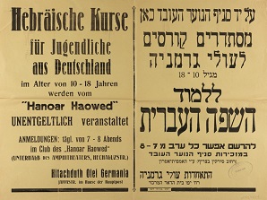 Объявление о наборе на курсы языка иврит, Германия, 1934