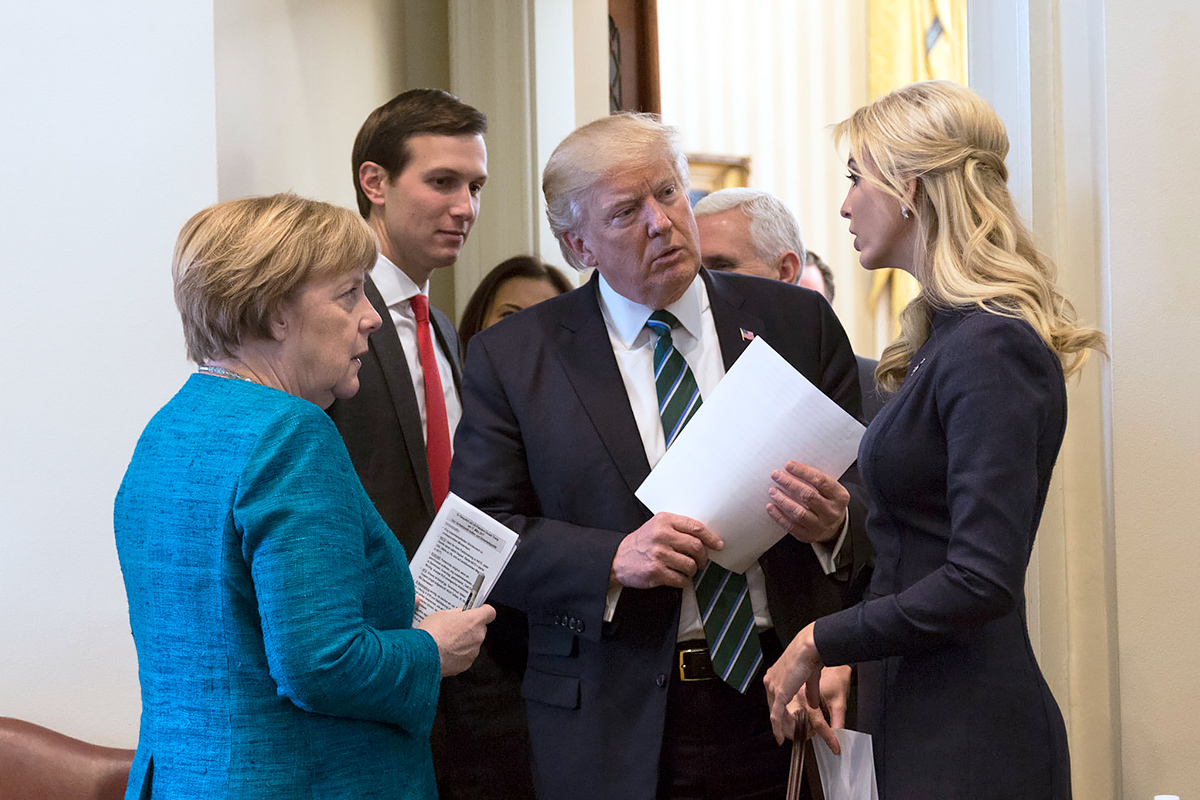 Джаред Кушнер и Иванка Трамп сопровождают президента на встрече с Ангелой Меркель