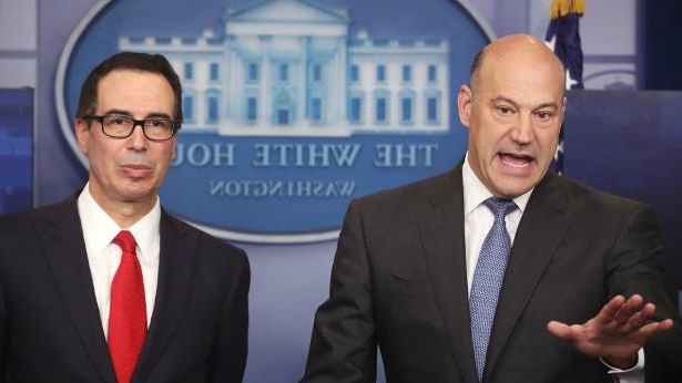 Стив Мнучин и Гарри Кон на конференции в Белом доме