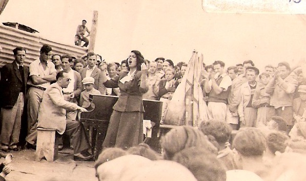 Моше Виленский играет на фортепиано в лагере для интернированных евреев на Кипре, 1947