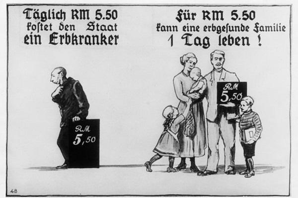 Нацистский плакат, иллюстрирующий бюджетные расходы на содержание больных и инвалидов