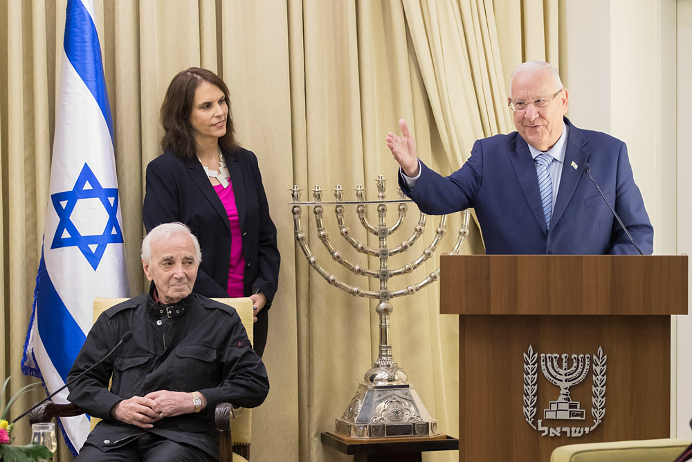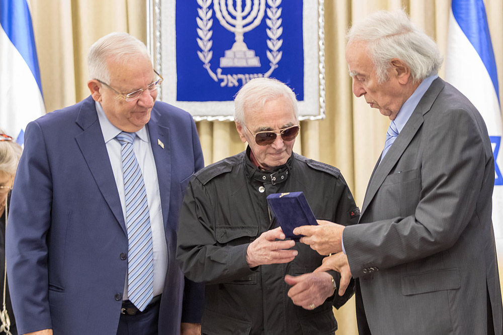 Медаль вручал в своей резиденции президент Израиля Ривлин, отметивший, что «еврейский народ навечно сохранит благодарность семье Азнавур». Певец в ответном слове признавался в любви к Иерусалиму и говорил о схожести судеб еврейского и армянского народов.