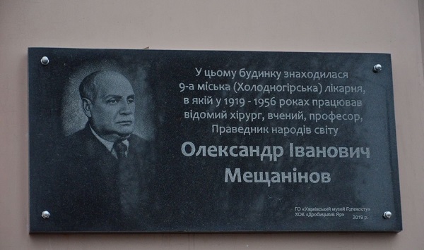 Мемориальная доска известному хирургу, Праведнику народов мира Александру Мещанинову открылась на фасаде детской больницы №19 в Харькове, где около 40 лет проработал знаменитый врач.