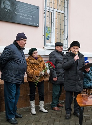 | Памятник Мещанинову. Фото: shukach.com | На открытии памятной доски. Фото: Редпост |