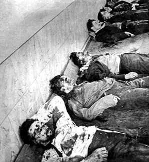 | Жертвы погрома. Первый в ряду — Николай Блинов | Мемориал в честь Николая Блинова в Ариэле |