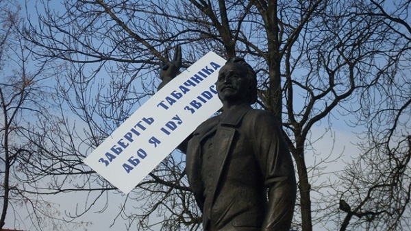Памятник Вячеславу Черноволу в разгар студенческих протестов с требованием отставки Дмитрия Табачника, Львов, 2010