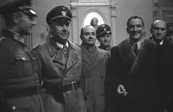 Рене Буске (второй справа) с высокопоставленными нацистами в ходе Большой облавы в Марселе