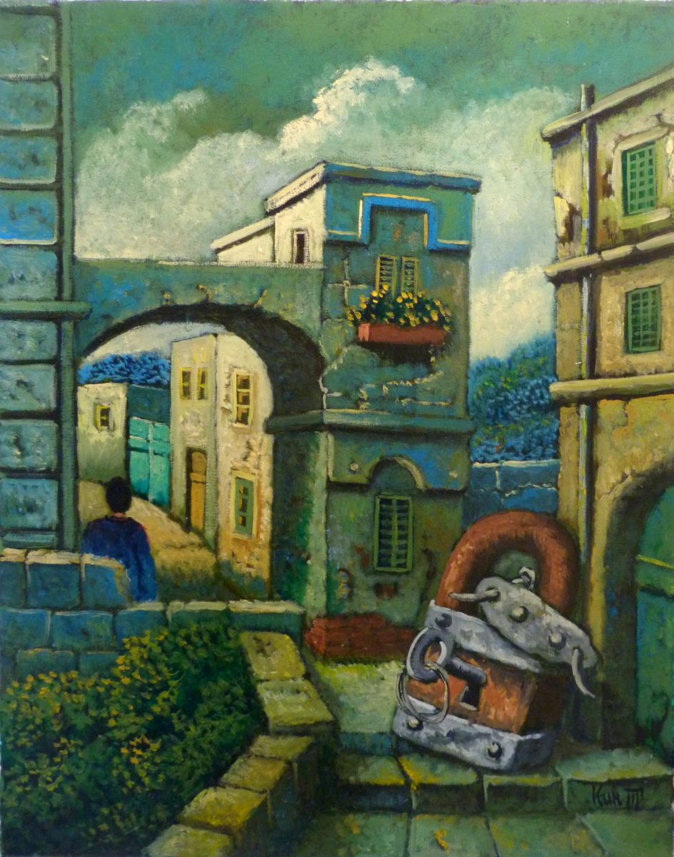 На полотне «Город из прошлого» художник изобразил вид на город, открывающийся через каменную арку в начале улицы, залитой солнечным светом, перед которой стоит человек в синих одеждах, отвернувшийся от зрителя; справа видны цветущие поля, а перед входом лежит огромный тяжелый замок. Этот образ города, отделенный солнечной аркой, — символ прежней, еще не разрушенной Катастрофой жизни в довоенном детстве художника, жизни миллионов людей, чьи судьбы были растоптаны Холокостом. Перед воротами зеленеет газон, улочка выглядит опрятной, ухоженной и благополучной, но дома перед аркой уже смотрятся ветхими, по их стенам ползут трещины, а окна закрыты решетками. В этом будто слышится предзнаменование грядущей трагедии, а массивный замок перед городом — словно та непреодолимая преграда памяти о немыслимом ужасе, которая навсегда отсекла прежнюю жизнь, навеки погасила прежнее солнце и закрыла вход в этот солнечный и спокойный мир для всех, кто живет с болью и памятью об ужасе Катастрофы.