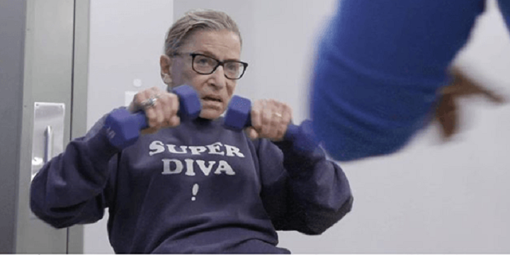 Последний аксессуар не случаен. В 1999-м у Рут впервые обнаружили рак прямой кишки, сделали операцию, затем был курс химиотерапии, после которого и появились перчатки. Тем не менее, судья не пропустила ни одного заседания, а немного восстановившись, начала работать с личным тренером — бывшим спецназовцем, который дважды в неделю тренировал Гинзбург прямо в здании Верховного суда. С тех пор она занималась регулярно в компании с коллегой и соплеменницей (и тоже дочерью иммигрантов из России) — судьей Еленой Каган, назначенной в ВС президентом Обамой. Несмотря на то, что Каган в прямом смысле годилась ей в дочери, Рут старалась не отставать, и почти каждый день выполняла комплекс упражнений для военнослужащих канадских ВВС. В 80 лет RBG двадцать раз отжималась от пола — сохранились ее фото в тренировочном костюме с вызывающей надписью: Super Diva.