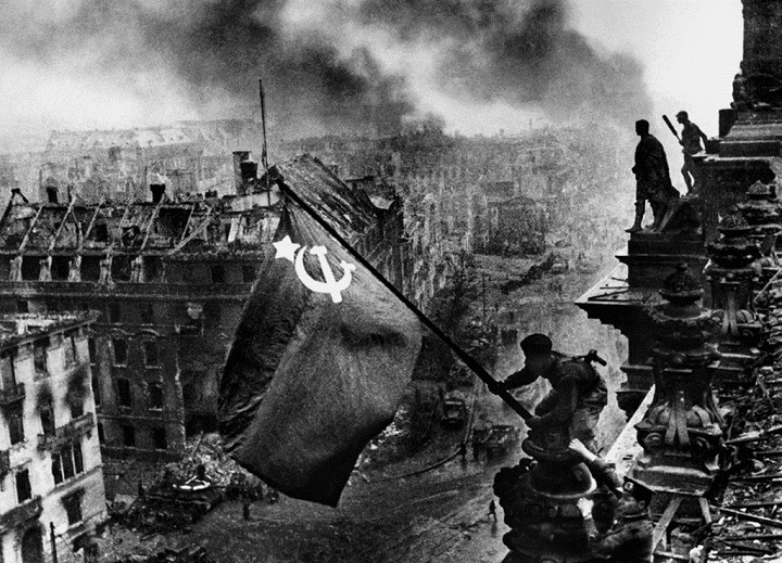 Символами победы союзников во Второй мировой войне стали два фото: красное знамя над полуразрушенным Рейхстагом в Берлине и группа американских солдат, устанавливающих американский флаг на Иводзиме. Автор первого снимка — уроженец Юзовки Евгений Халдей. Во время еврейского погрома 13 марта 1918 года были убиты его мать (при попытке защитить сына) и дед, а сам годовалый Женя получил пулевое ранение в грудь. В 13 лет пришел на завод, тогда же увлекся фотографией и в 16 стал фотокором. С 1939 года Халдей — корреспондент «Фотохроники ТАСС». За четыре года войны прошел со своей камерой от Мурманска до Берлина. В историю вошли его кадры с конференции в Потсдаме и подписания акта капитуляции Германии. Фотографии Евгения Халдея были представлены в качестве вещественных доказательств на Нюрнбергском процессе.