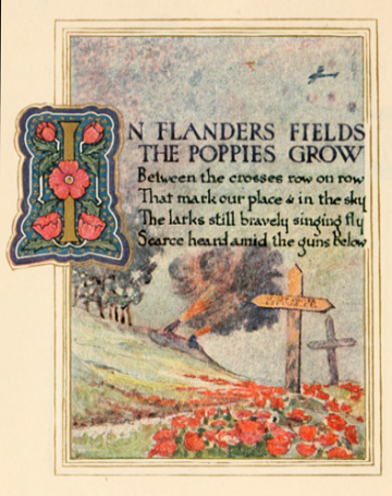 Но это уже позднее советское заимствование. В мировую культуру красный мак, как символ жертв войны, вошел благодаря стихотворению «В полях Фландрии» (In Flanders Fields), написанному подполковником канадской армии и военно-полевым хирургом Джоном Маккреем в мае 1915 года.