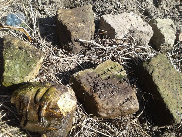 Обнаруженные в пруду фрагменты надгробий. Фото Тараса Василика