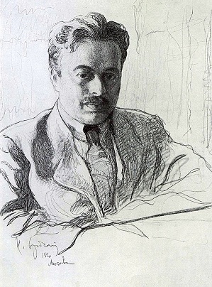 Портрет Максимилиана Волошина, фрагмент, худ. Б. Кустодиев, 1924