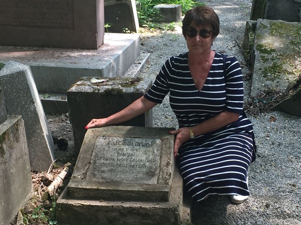 Энн Дриллих на кладбище в Тарнуве у камня в память ее семьи, погибшей в Холокосте