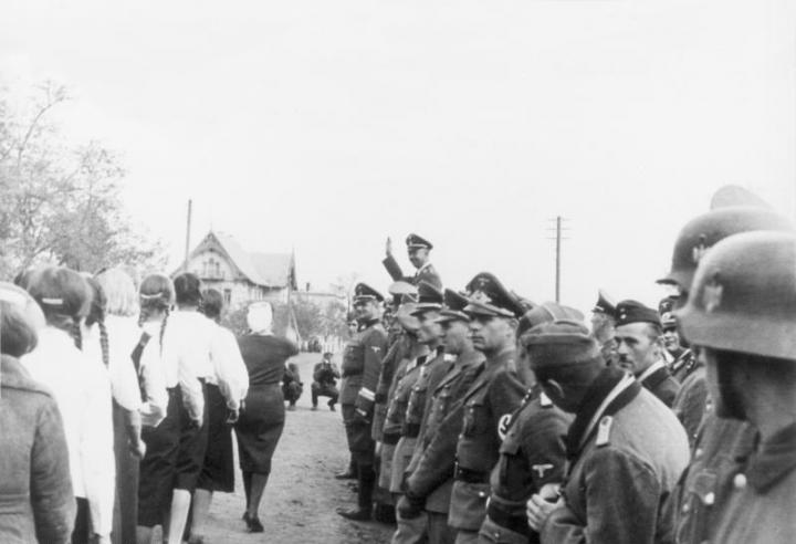 5 жовтня 1941 місто було окуповане нацистами, а незабаром в Молочанську відкрилося бюро Deutsche Volksliste, де реєстрували фольксдойче. Гельмут пішов добровольцем в Waffen-SS і став перекладачем в айнзацкоманді 10. До липня 1943-го він служив в Айнзацгрупі D, що діяла на території південної України і Бессарабії (на її рахунку — 92 000 убитих євреїв до кінця 1941 року). Оберлендер брав участь у знищенні ромів і євреїв на окупованій території.