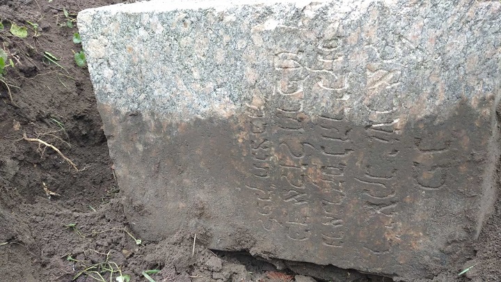 Зараз за будинком туляться приватні гаражі, спортмайданчик, а трохи віддалік можна було побачити гранітну монолітну плиту. Трохи розкопавши її, я помітив напис на івриті і зрозумів, що мова йде про єврейський надгробок, який німці з невідомої причини вибракували при зведенні фундаменту. Текст на мацеві повідомляє, що тут «похований ребе Яків-Ісраель син Авраама, який помер 22 елуля 5689 року» (1 жовтня 1929 р., — О.Ш.).